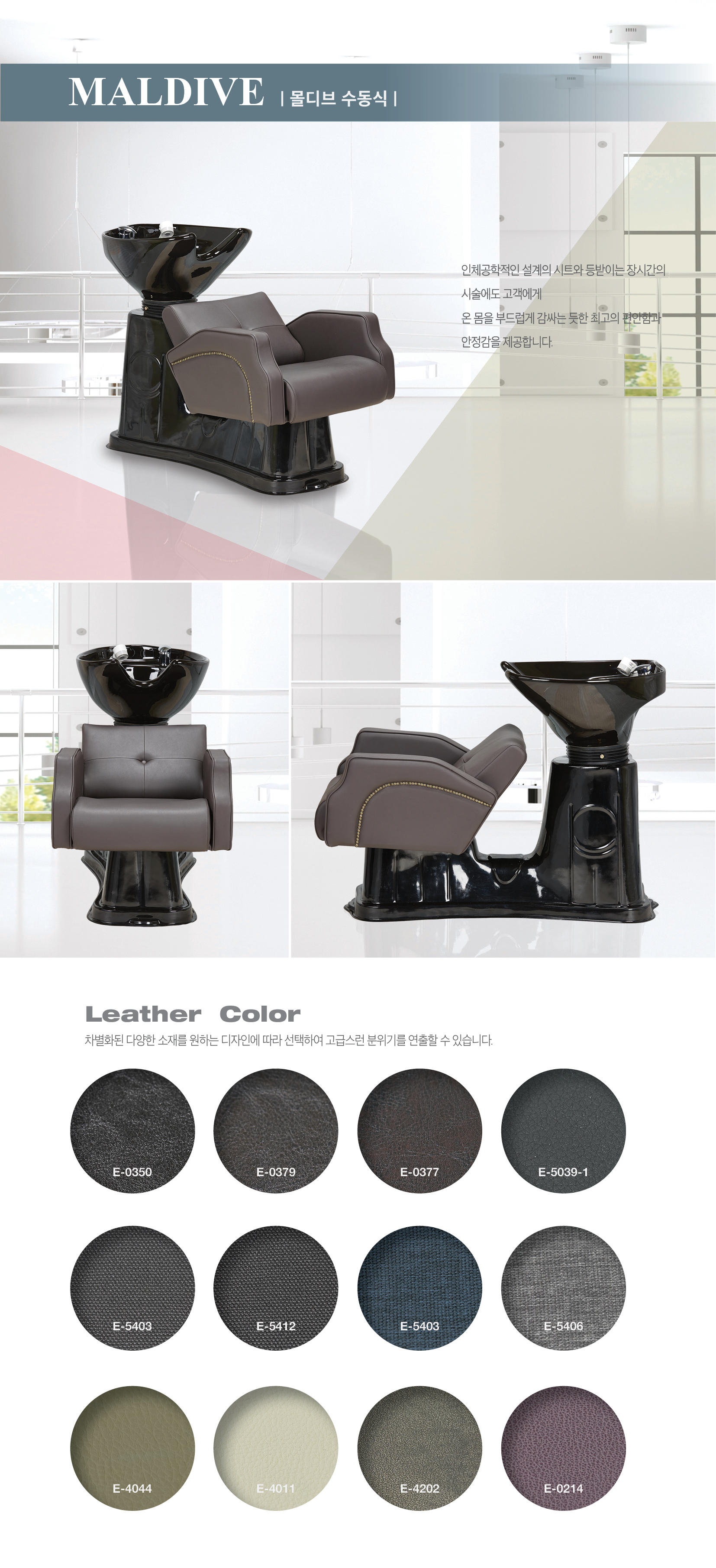 인체공학적인 설계의 시트와 등받이는 장시간의 시술에도 고객에게 온 몸을 부드럽게 감싸는 듯한 최고의 편안함과 안정감을 제공합니다.