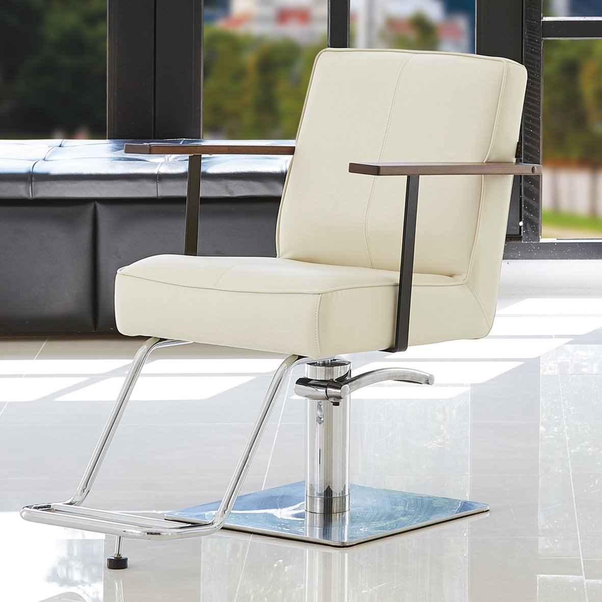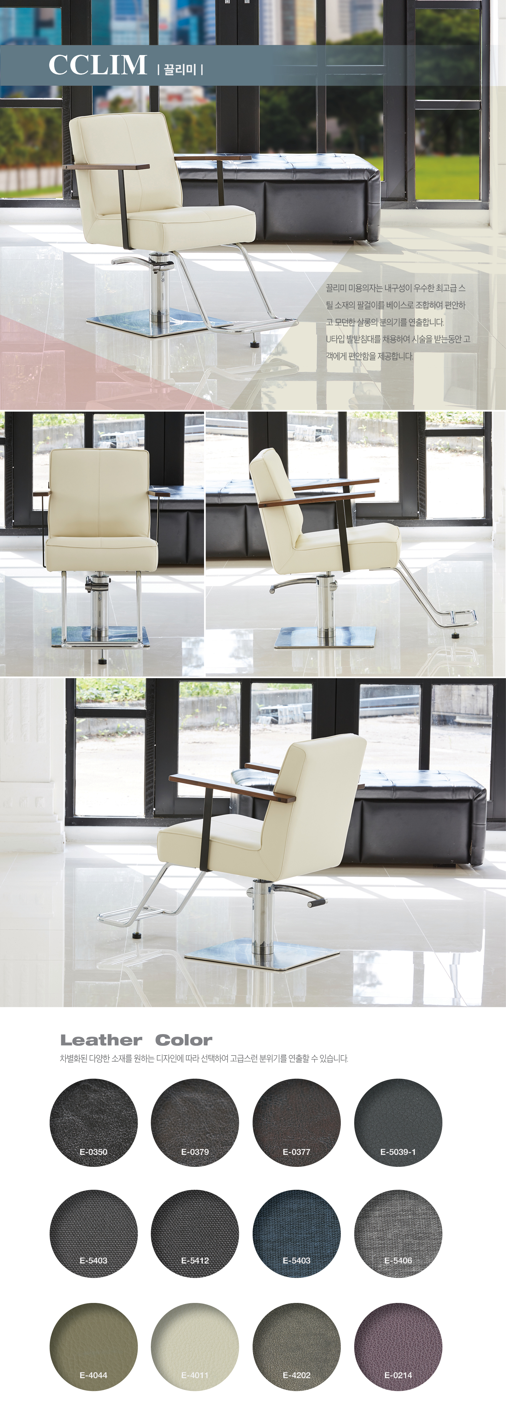 이끌림 미용의자는 내구성이 우수한 최고급 스틸 소재의 팔걸이를 베이스로 조합하여 편안하 고 모던한 살롱의 분위기를 연출합니다. U타입 발받침대를 채용하여 시술을 받는 동안 고객에게 편안함을 제공합니다.