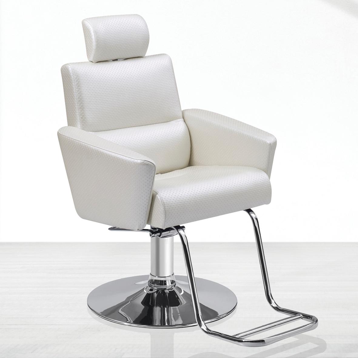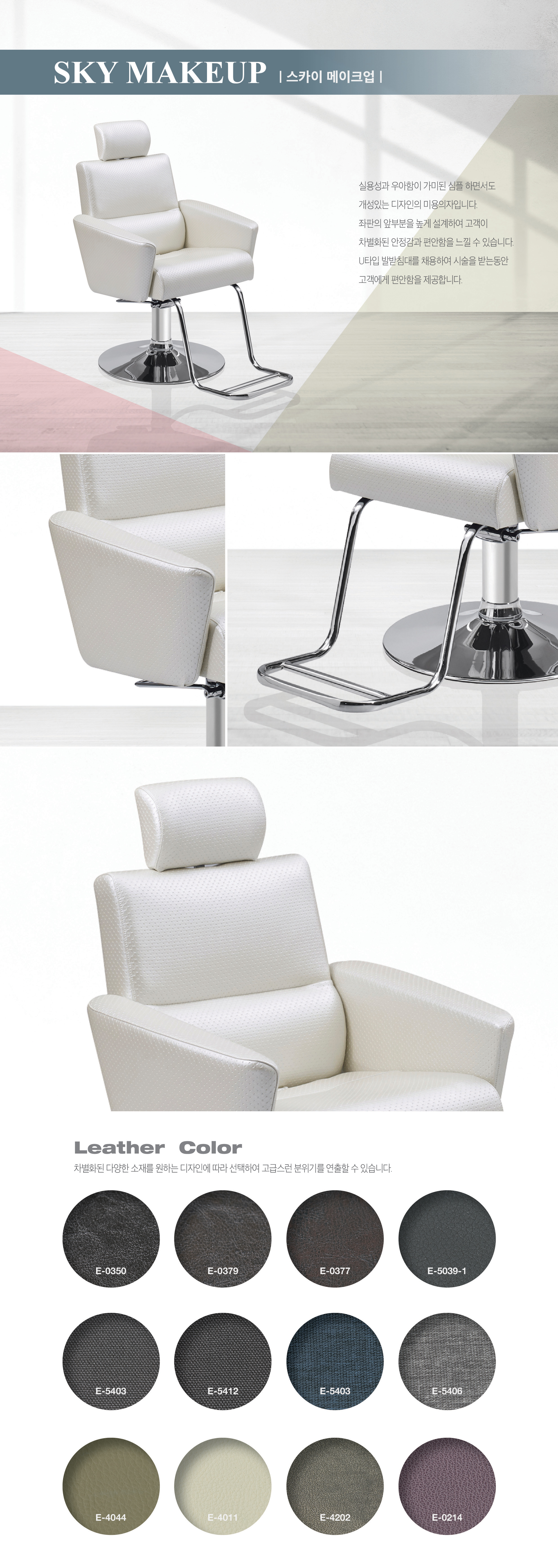 실용성과 우아함이 가미된 심플 하면서도  개성있는 디자인의 미용의자입니다.  좌판의 앞부분을 높게 설계하여 고객이  차별화된 안정감과 편안함을 느낄 수 있습니다.